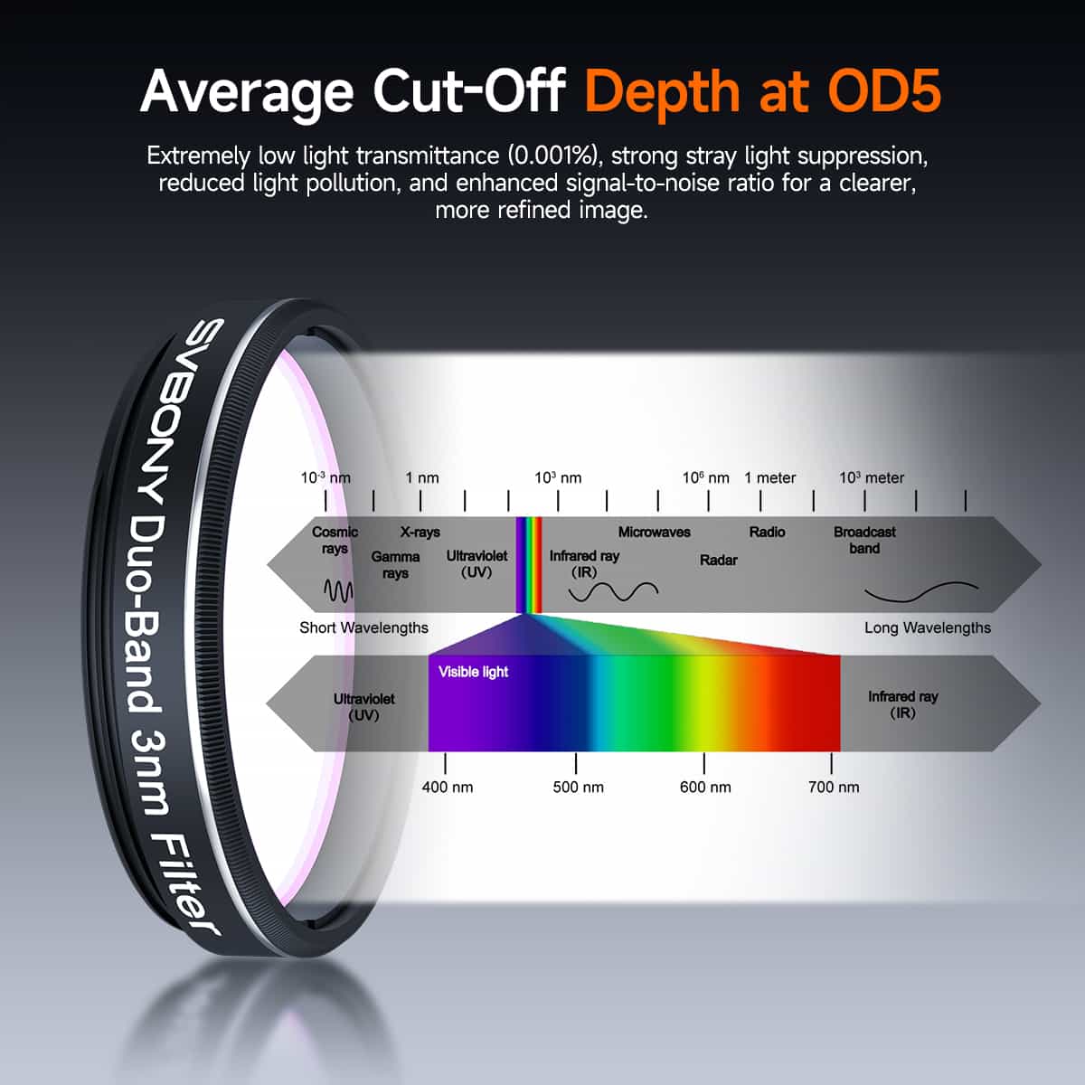 Svbony Teleskopfilter 1.2 5 Zoll, Lichtverschmutzungsfilter, OIII (3nm) & HA (7nm) ​Dual-Band 3nm Nebel Filter