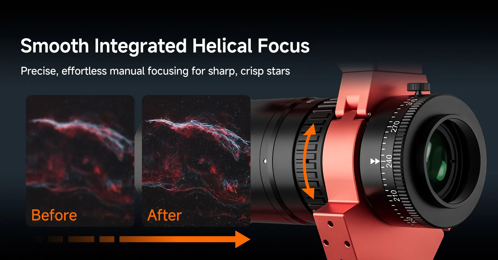 Der einteilige Helikalfokussierer ist bereits für die Montage eines elektronischen Autofokus (EAF) vorbereitet. So wird eine präzise, automatisierte Feinjustierung beim Imaging ermöglicht – im Gegensatz zu separaten manuellen Fokussiersystemen. - Universelle Kompatibilität & einfache Integration