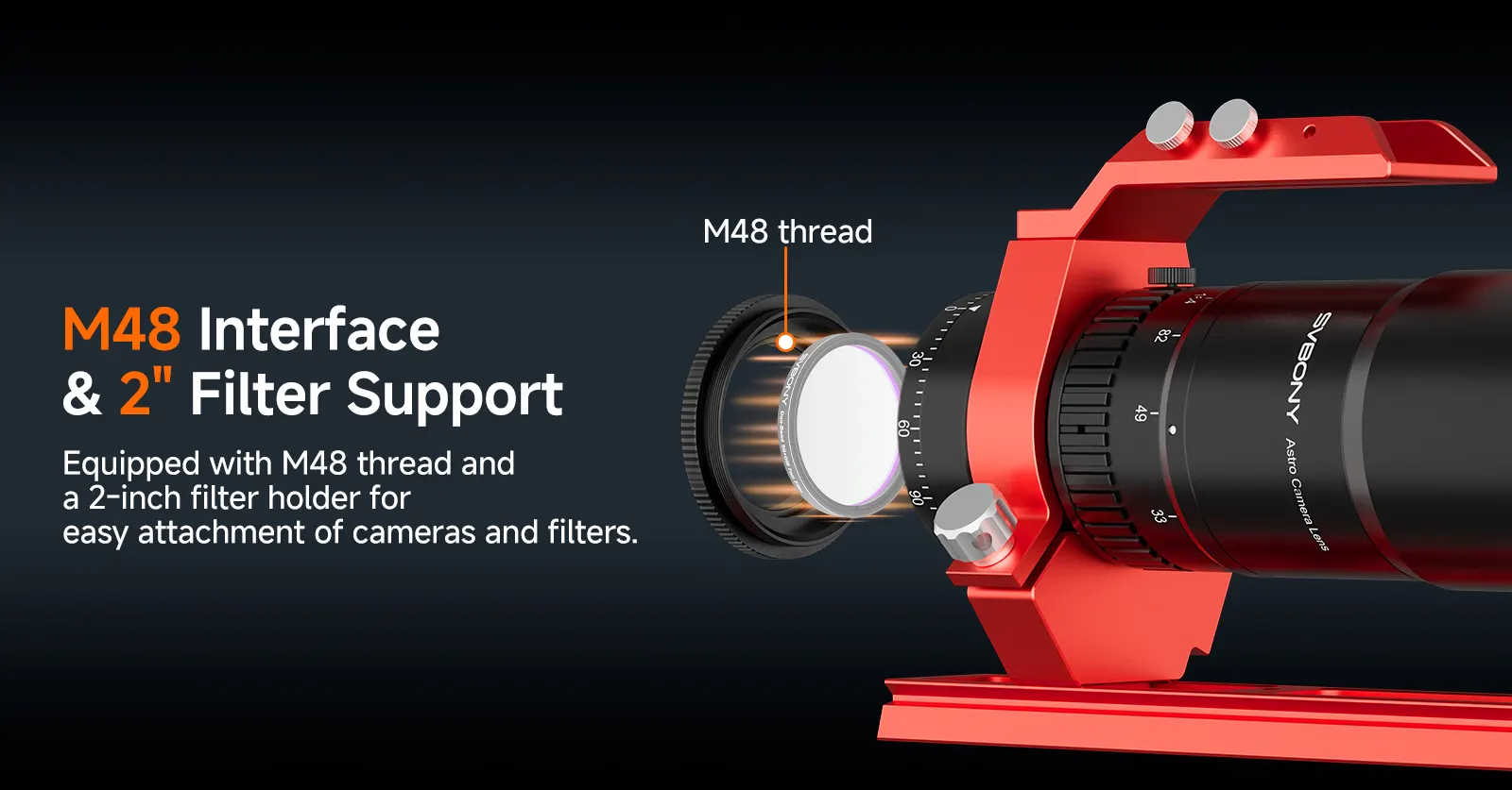 Mit standardisierten Gewindeanschlüssen und großzügigem Backfokus lässt sich das System nahtlos mit DSLRs, Astro-Kameras und Filterrädern verbinden – für eine schlanke Imaging-Kette ohne zusätzliche Adapter. - Robuste Bauweise für anspruchsvolle Bedingungen
