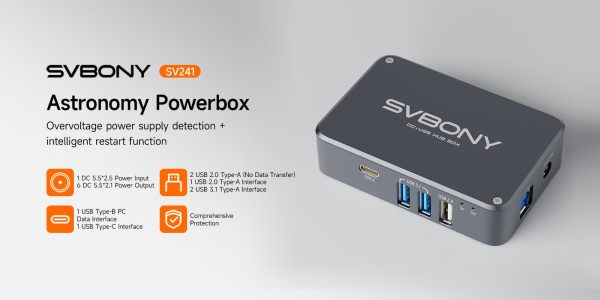 SVBONY SV241 [W9193A] Astronomie Micro DC+USB HUB Power Box 2x USB3.1 Hochgeschwindigkeitsausgänge & Type-C Schnittstelle für Astrofotografie