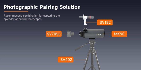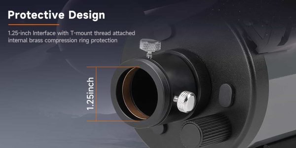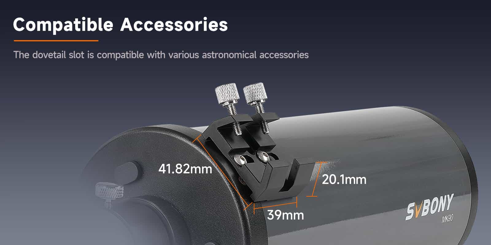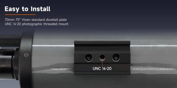 Komplettes Zubehörset: Enthält eine Schwalbenschwanz-Montagebasis, eine 70-mm-Vixen-Schwalbenschwanzschiene, eine Objektivabdeckung und eine 1,25″-Staubschutzkappe, sodass Sie für jede Beobachtungssitzung bestens vorbereitet sind.